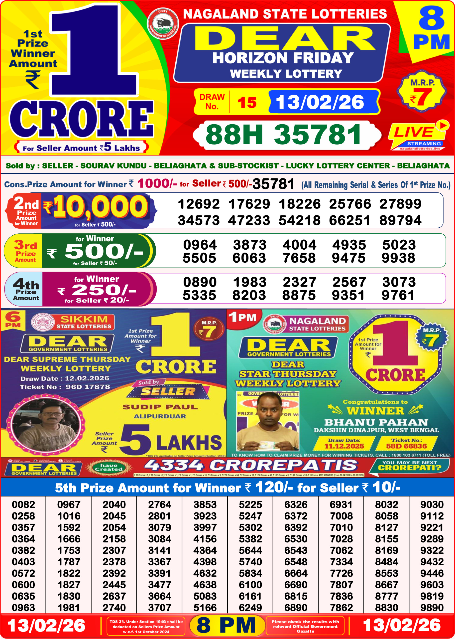 Lottery Sambad Lottery Result 1PM 13/02/2026