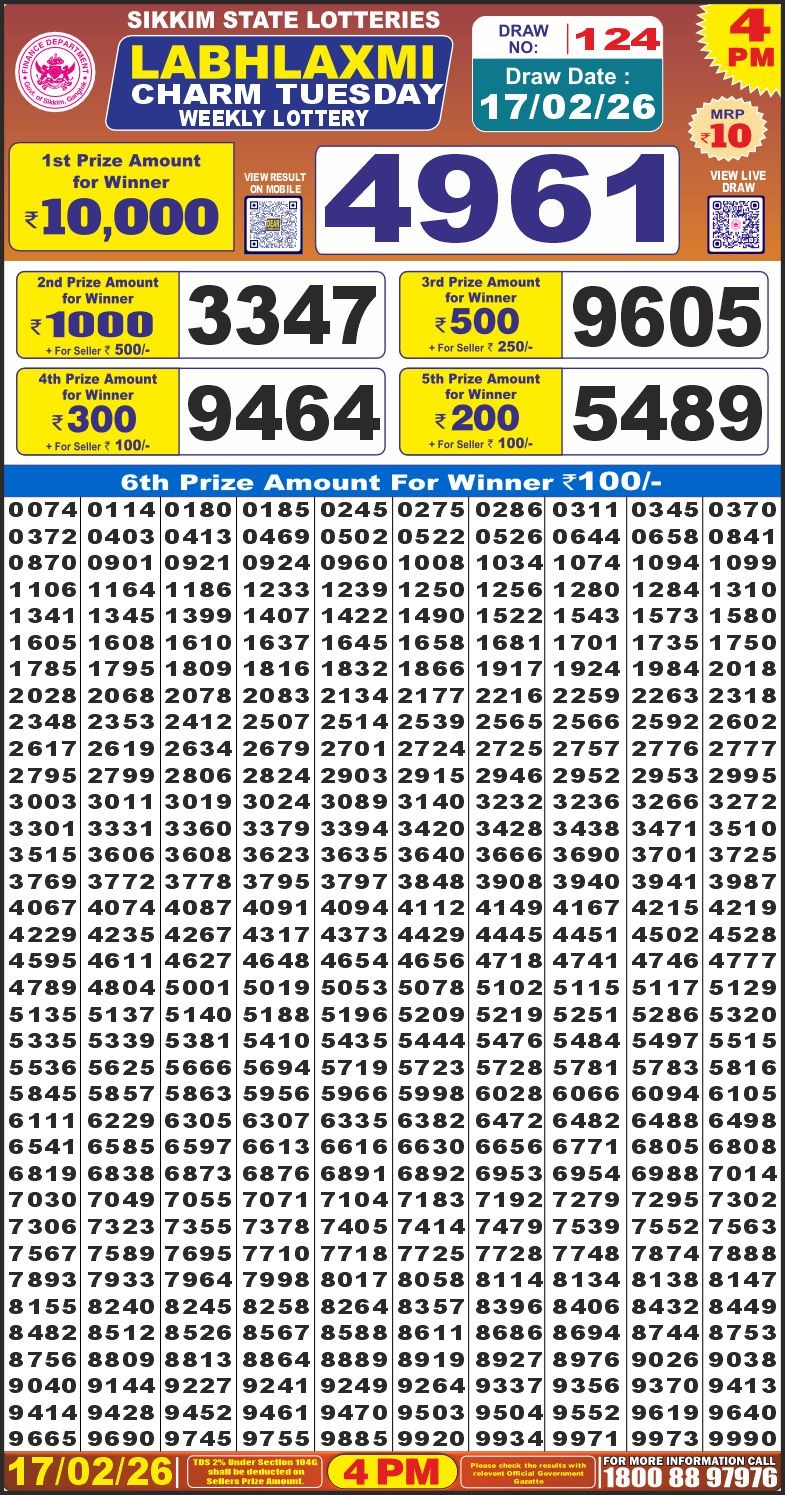 Labh Laxmi Lottery 4PM Result 17/02/2026