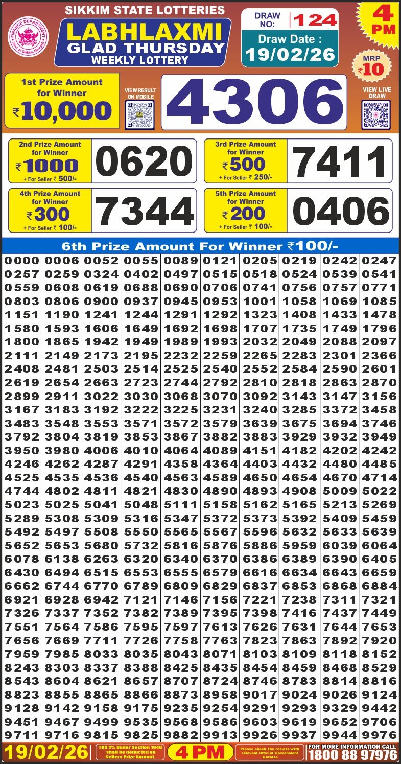 Labh Laxmi Lottery 4PM Result 19/02/2026