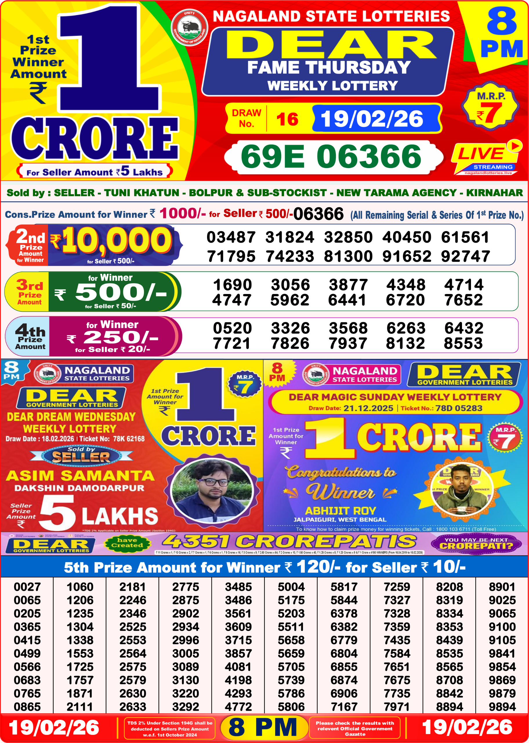 Lottery Sambad Lottery Result 1PM 19/02/2026