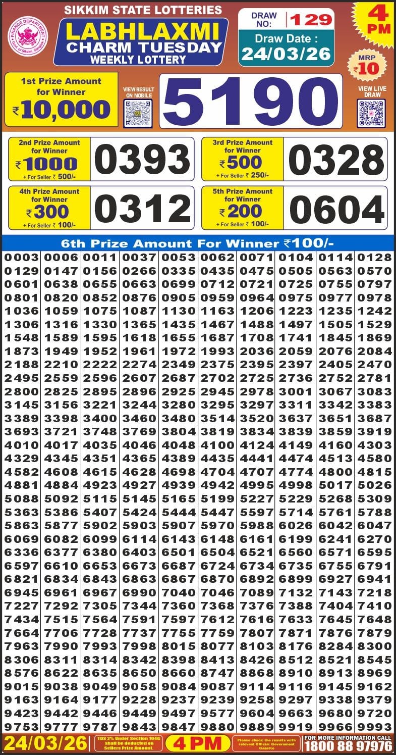 Lottery Sambad Result 6PM 24/03/2026