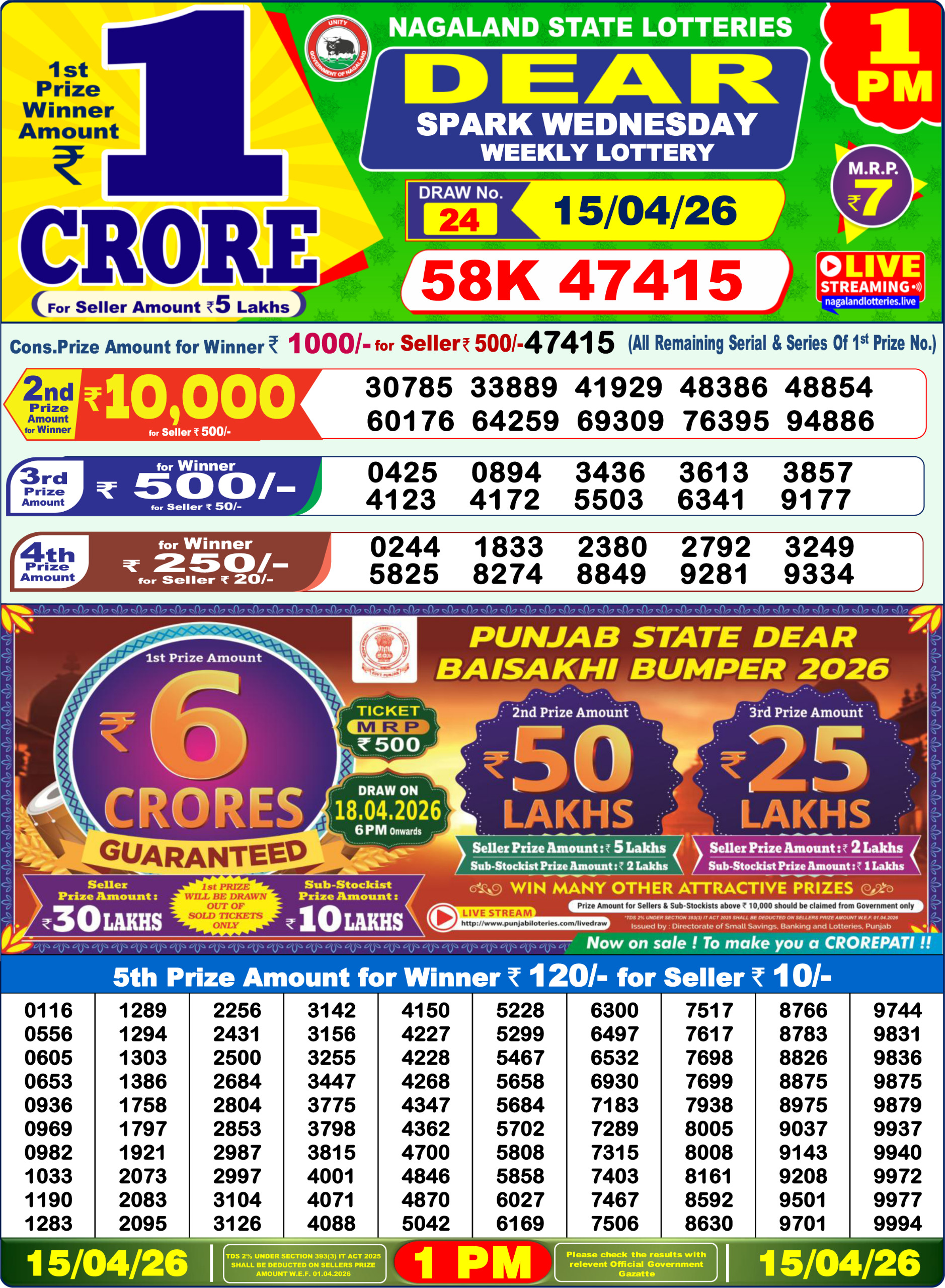 Lottery Sambad Lottery Result 1PM 15/04/2026