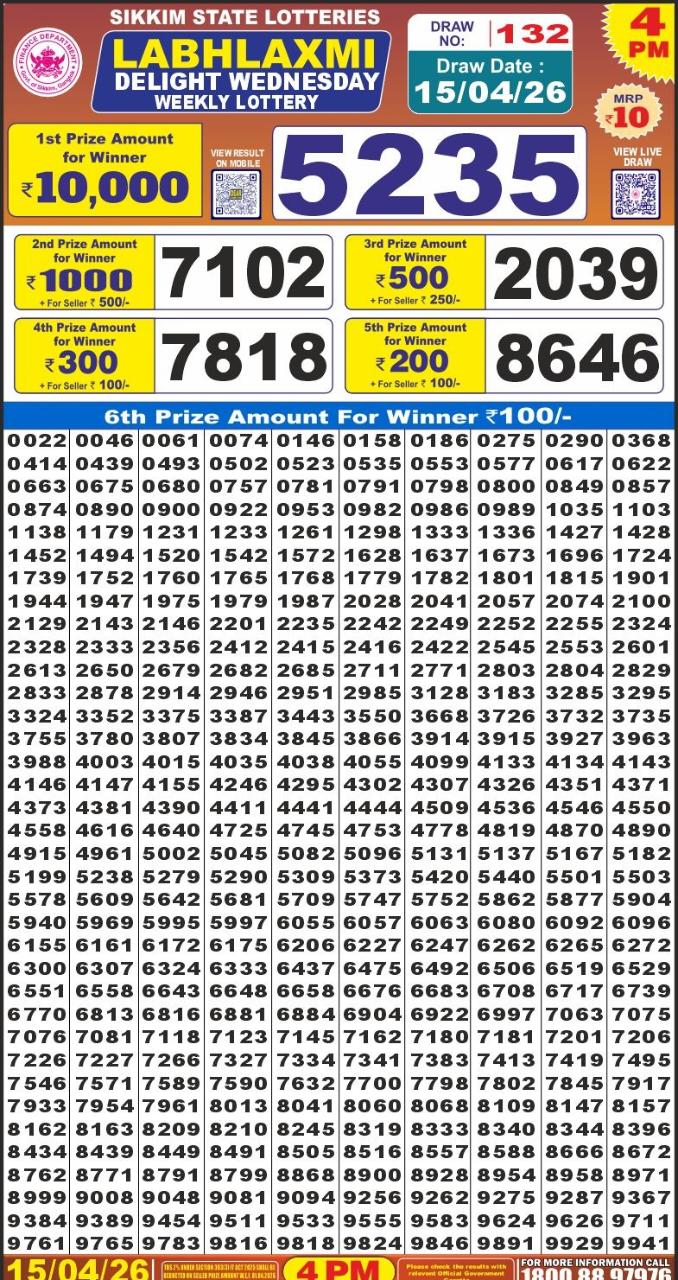 Labh Laxmi Lottery 4PM Result 15/04/2026