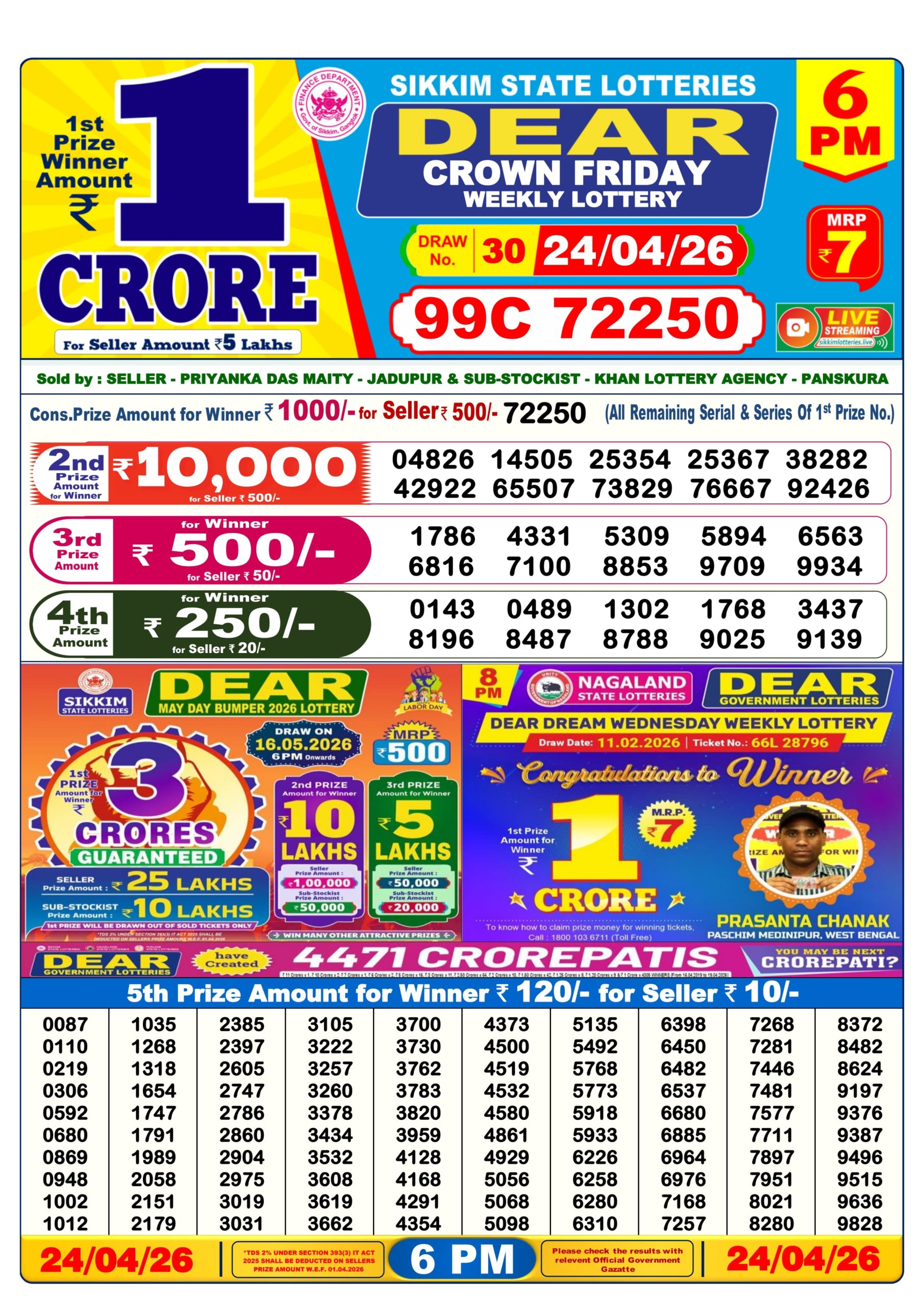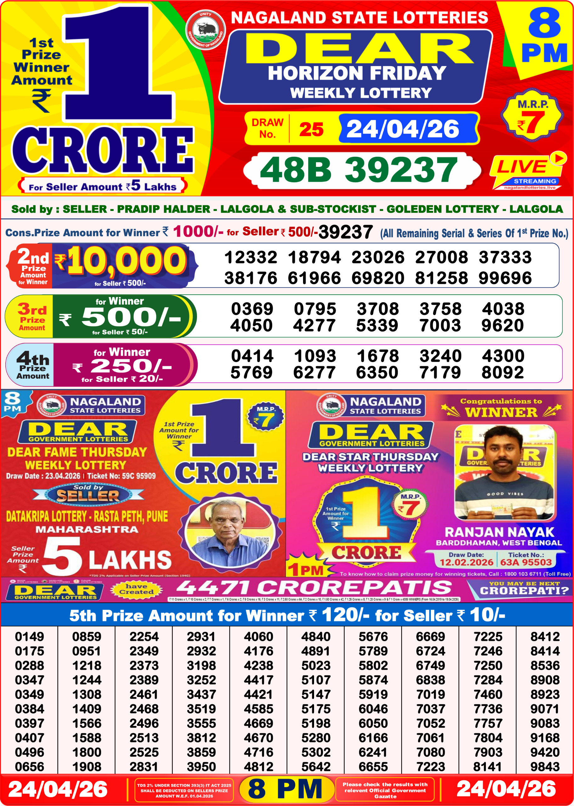 Lottery Sambad Lottery Result 1PM 24/04/2026