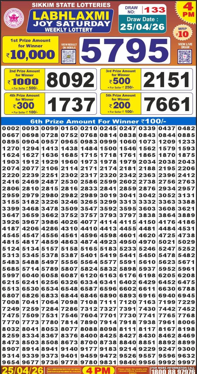 Labh Laxmi Lottery 4PM Result 25/04/2026