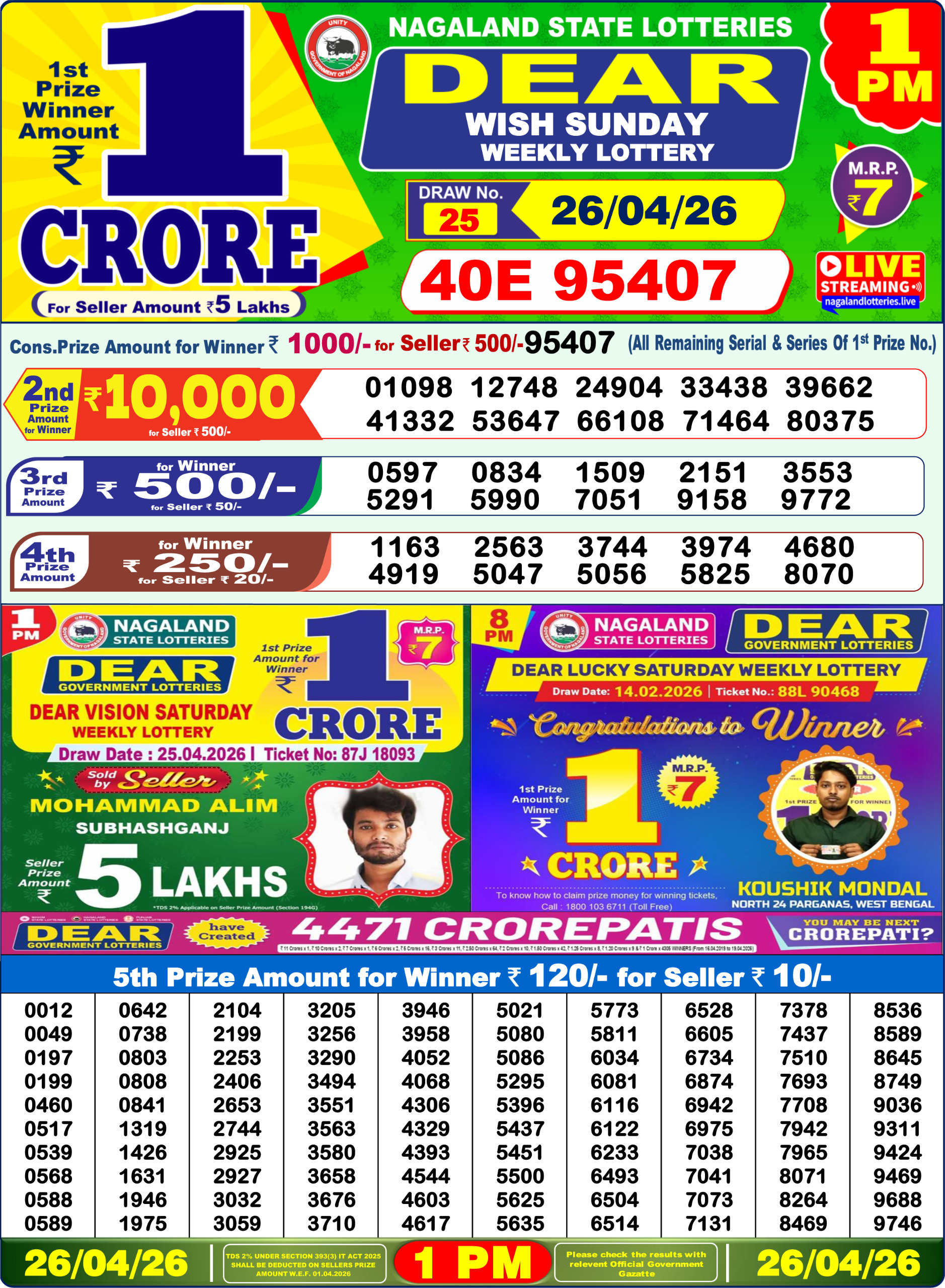 Lottery Sambad Lottery Result 1PM 25/04/2026