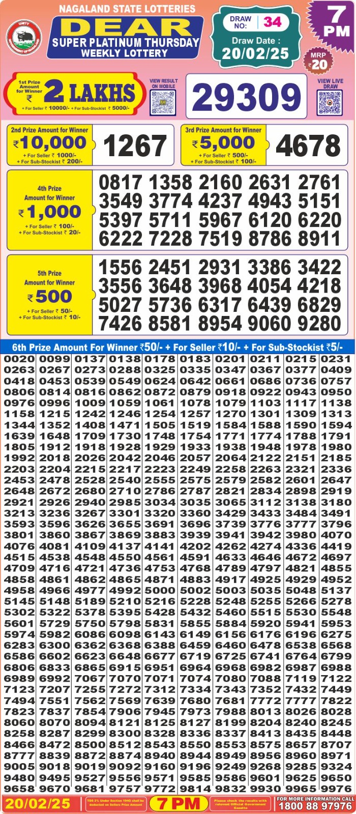 Dear Super Lottery Result 20/02/25 Leave a Comment on Dear Super Lottery Result 20/02/25 Posted in Dear Super Lottery Result