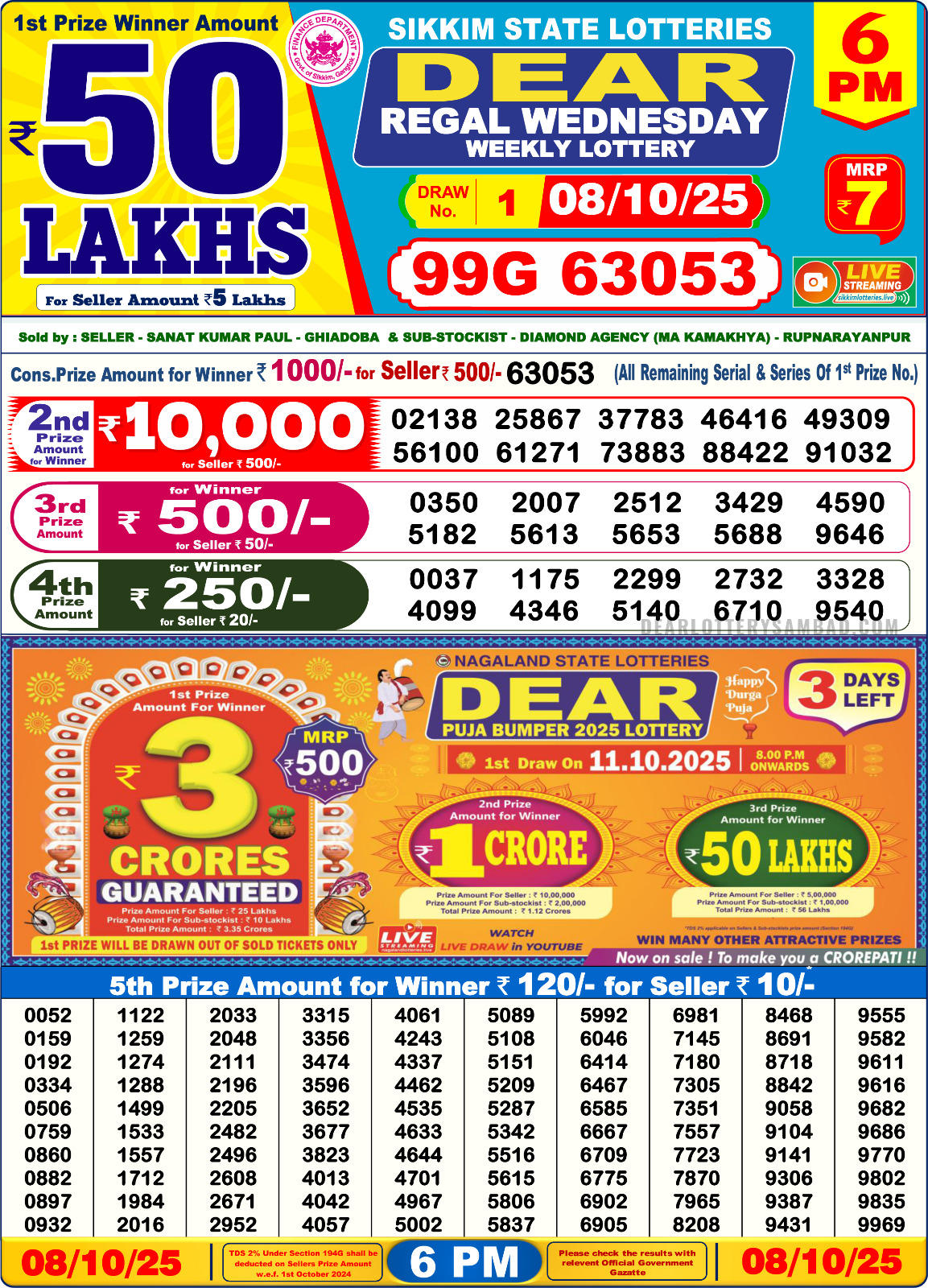 Dear Lottery Sambad 6:00 PM Result Live 07/10/25