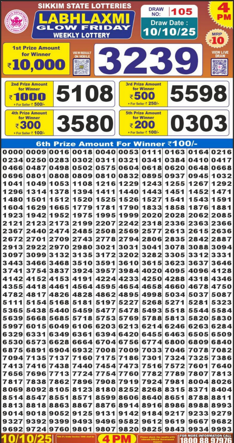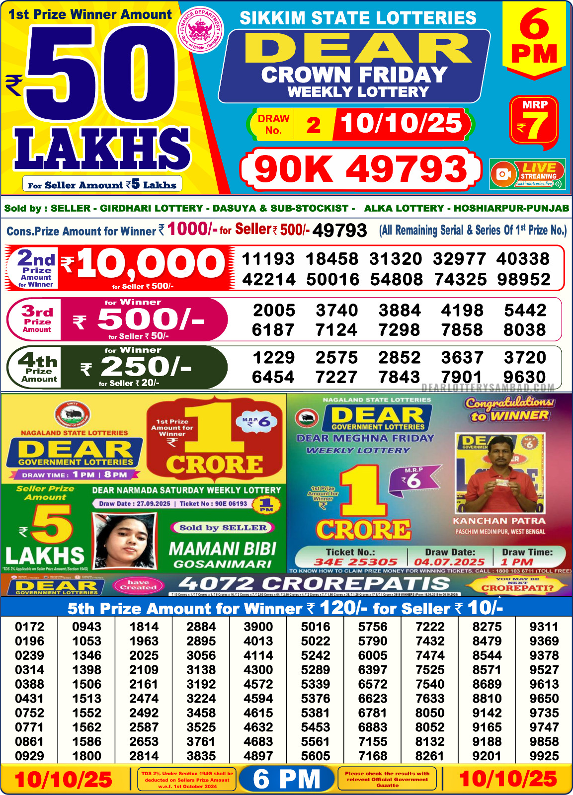 Dear Lottery Sambad 6:00 PM Result Live 10/10/25