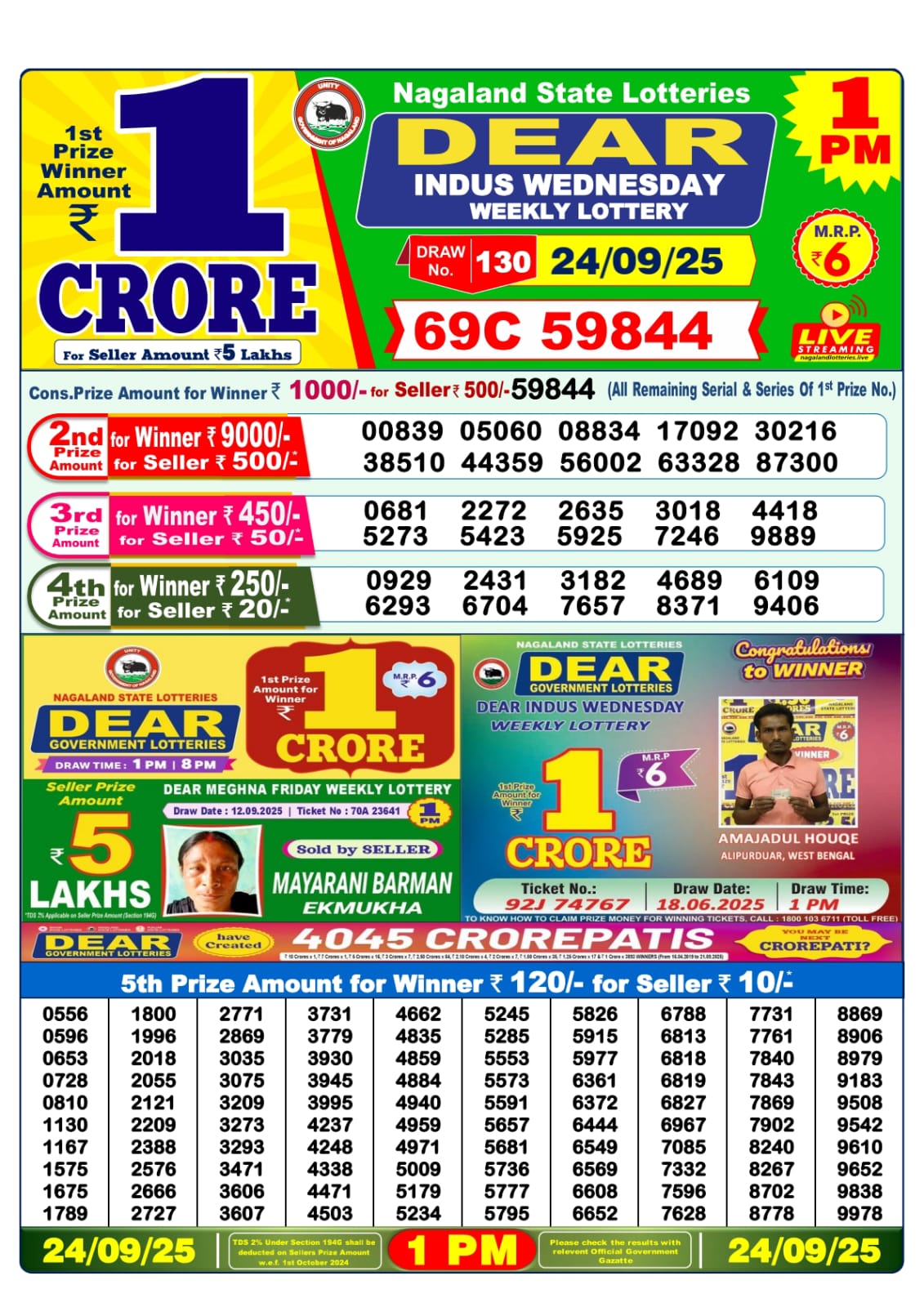 Dear Lottery Sambad 1:00 PM Result Live 24/09/25