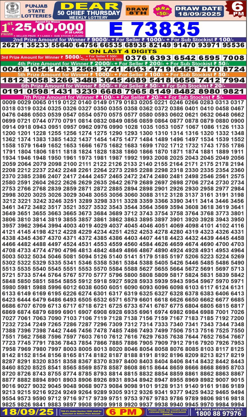 Punjab State Dear 50 Thursday Weekly Lottery Result Today 18/09/25 Leave a Comment on Punjab State Dear 50 Thursday Weekly Lottery Result Today 18/09/25