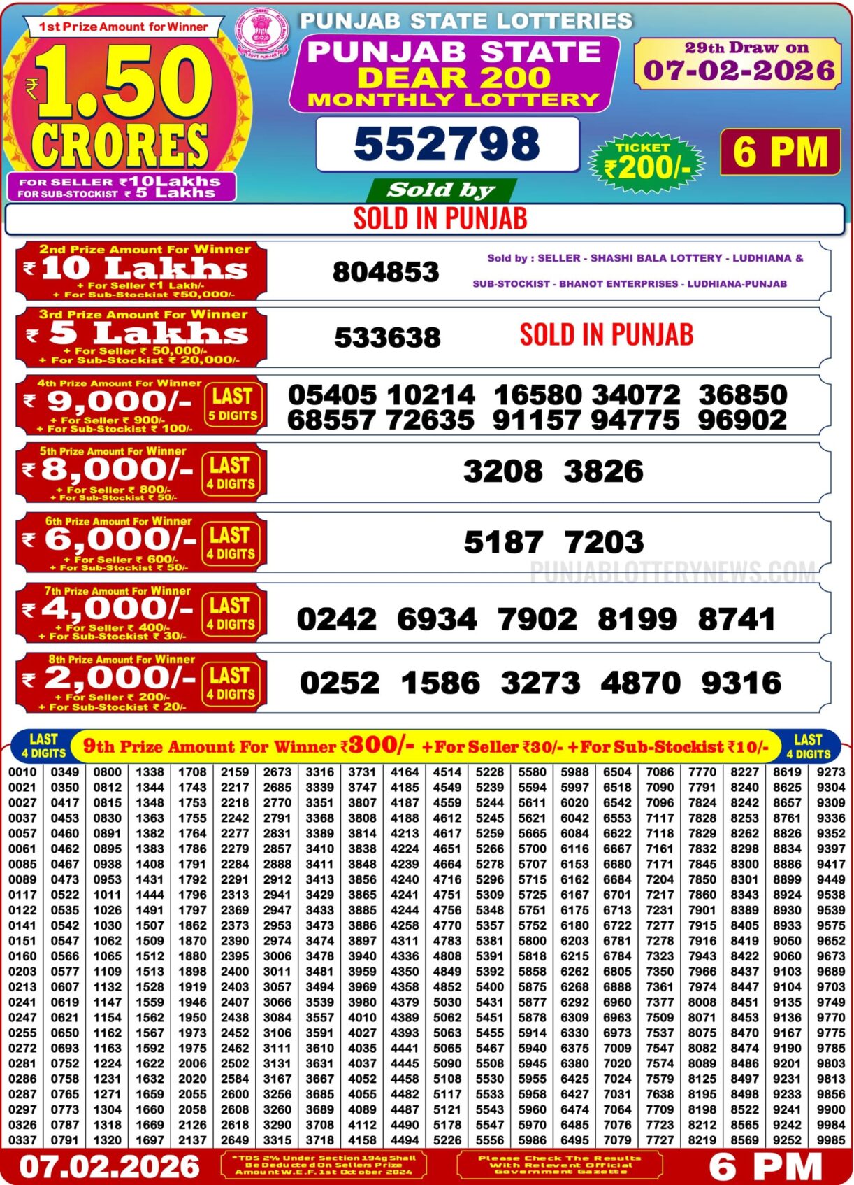 Punjab State Lottery 200 Monthly Result 07/02/2026 Leave a Comment on Punjab State Lottery 200 Monthly Result 07/02/2026 Posted in Punjab Lottery